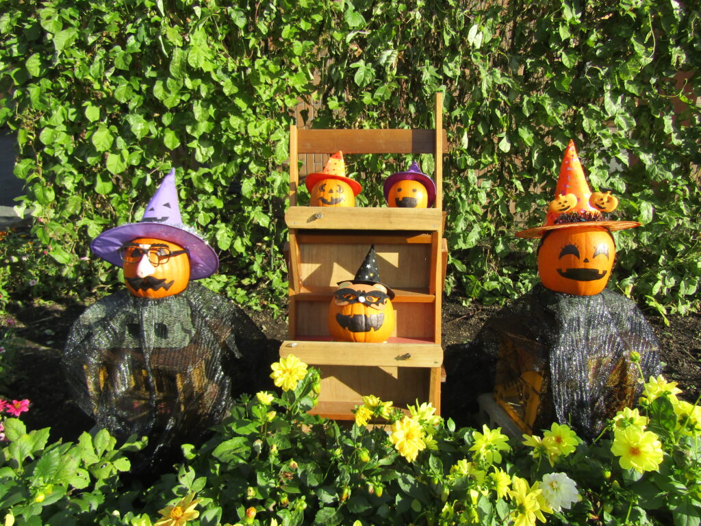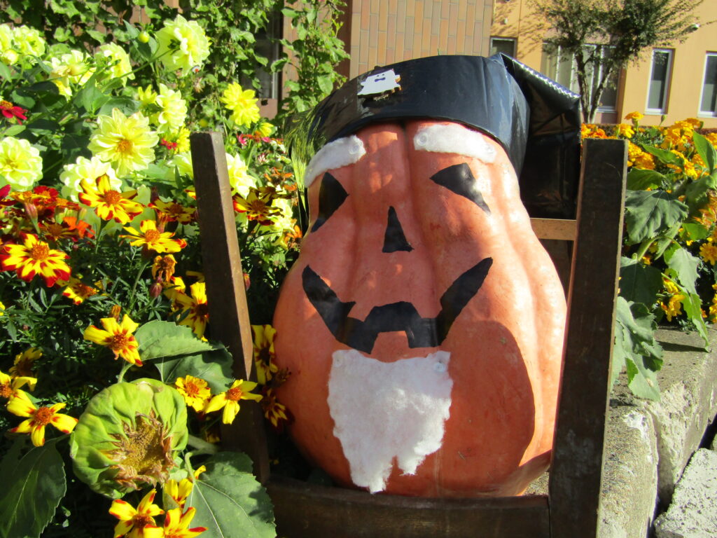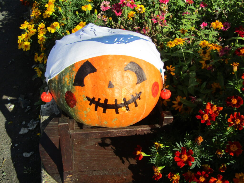 10/31はハロウィンですね。玄関前と事務所前に、今年も素晴らしい完成度のおばけカボチャが登場しています。