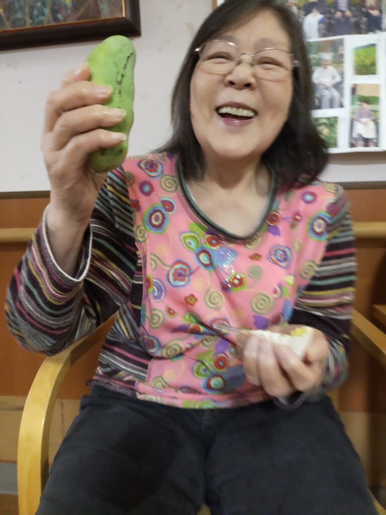 10月半ばにサンブルクの中庭で実ったポポーの試食を行いました。