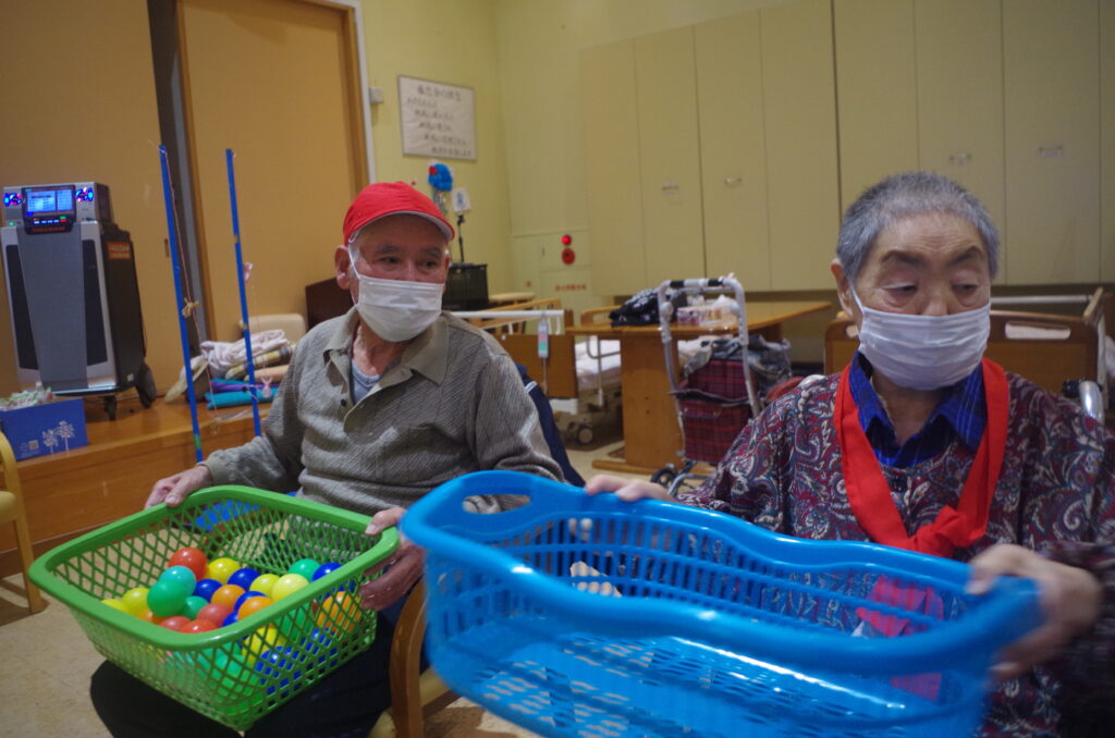 いよいよ競技開始です❕利用者さんによるボール運び⚽️