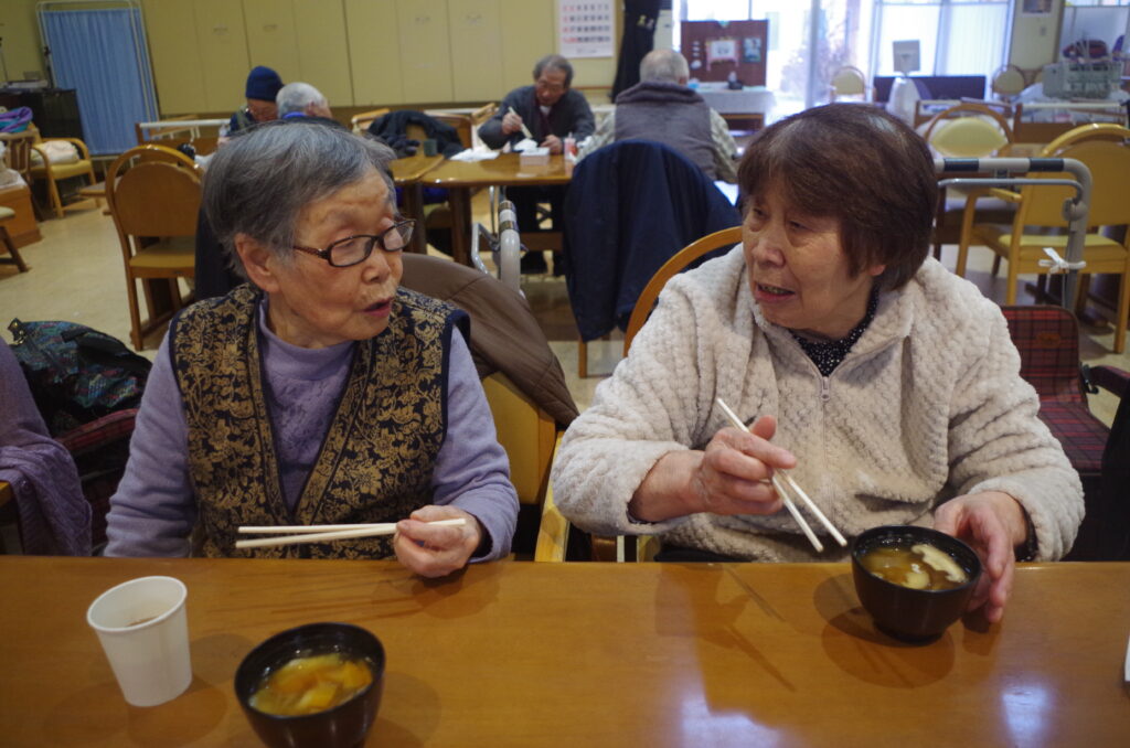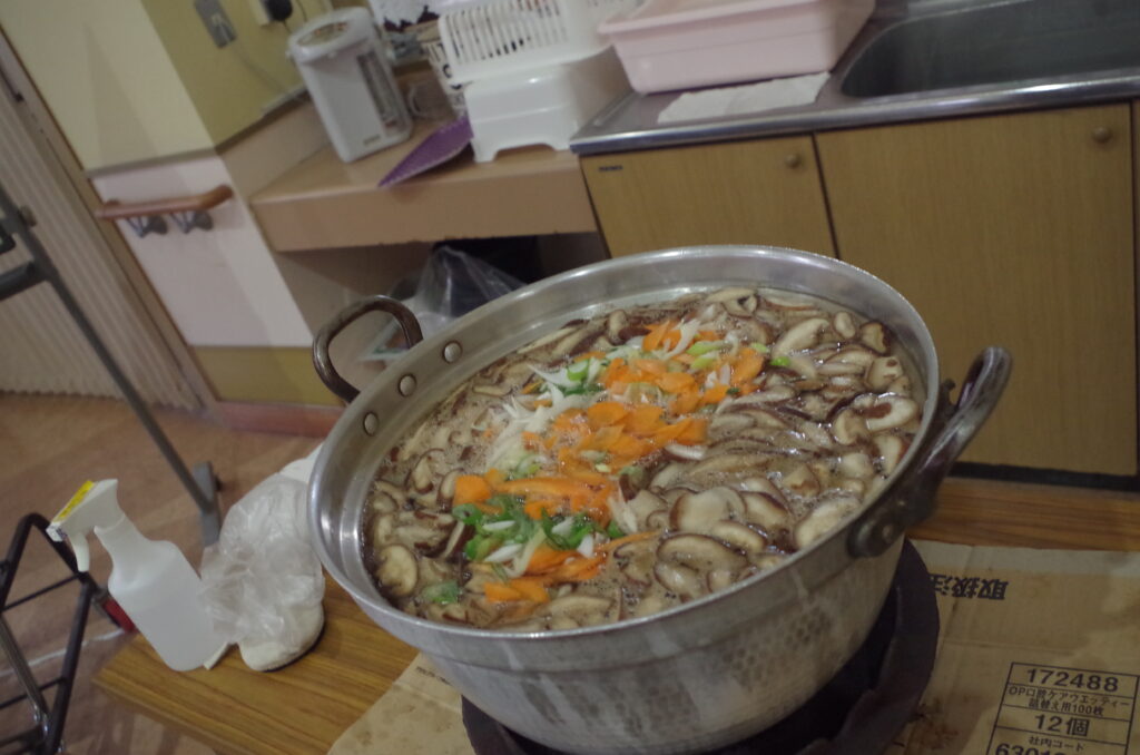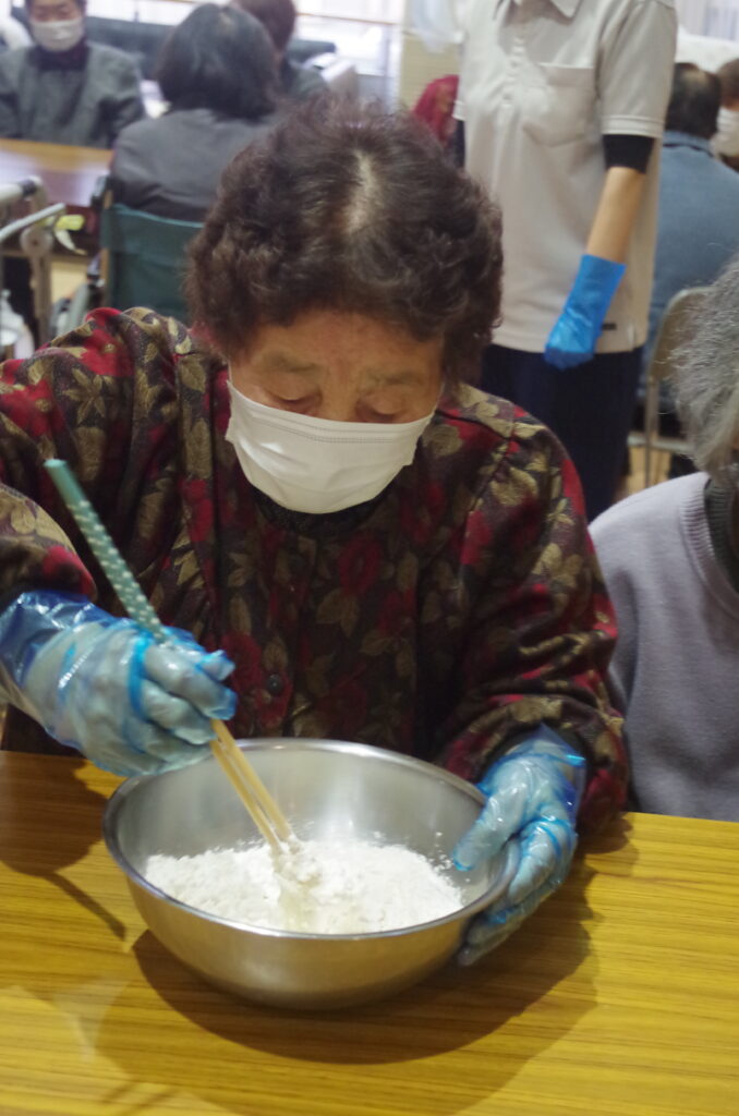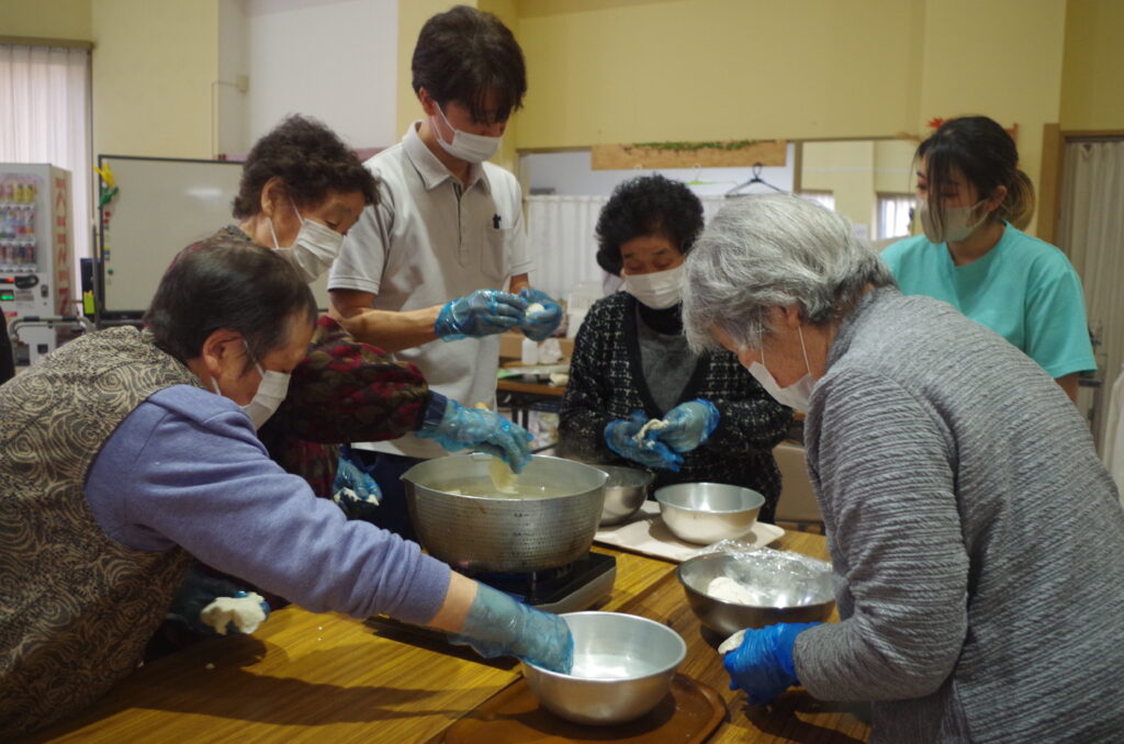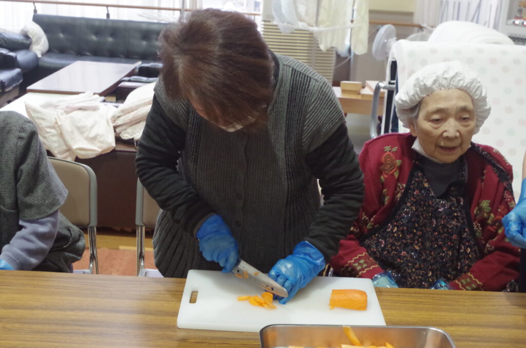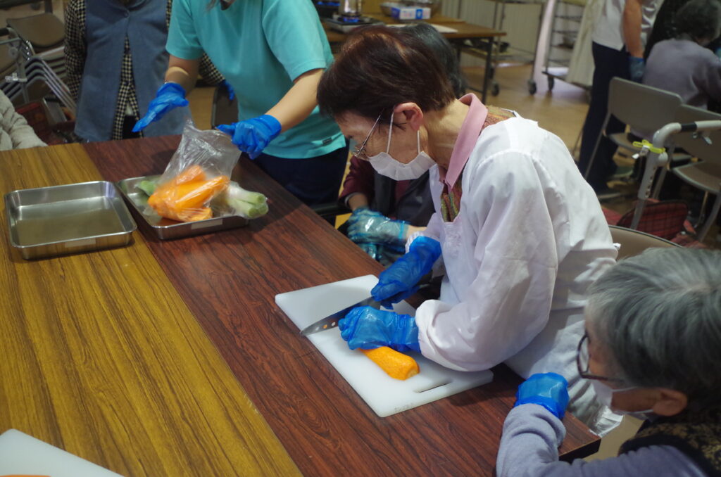 野菜を切るのとひっつみをこねるのと、2グループに分かれて利用者さんに行って頂きました🔪